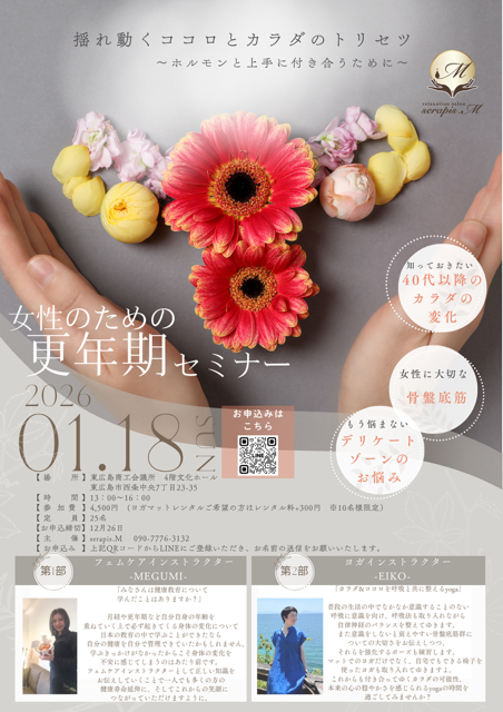 フェムケアインストラクターMEGUMIと ヨガインストラクターEIKOによる セミナーを開催いたします。
